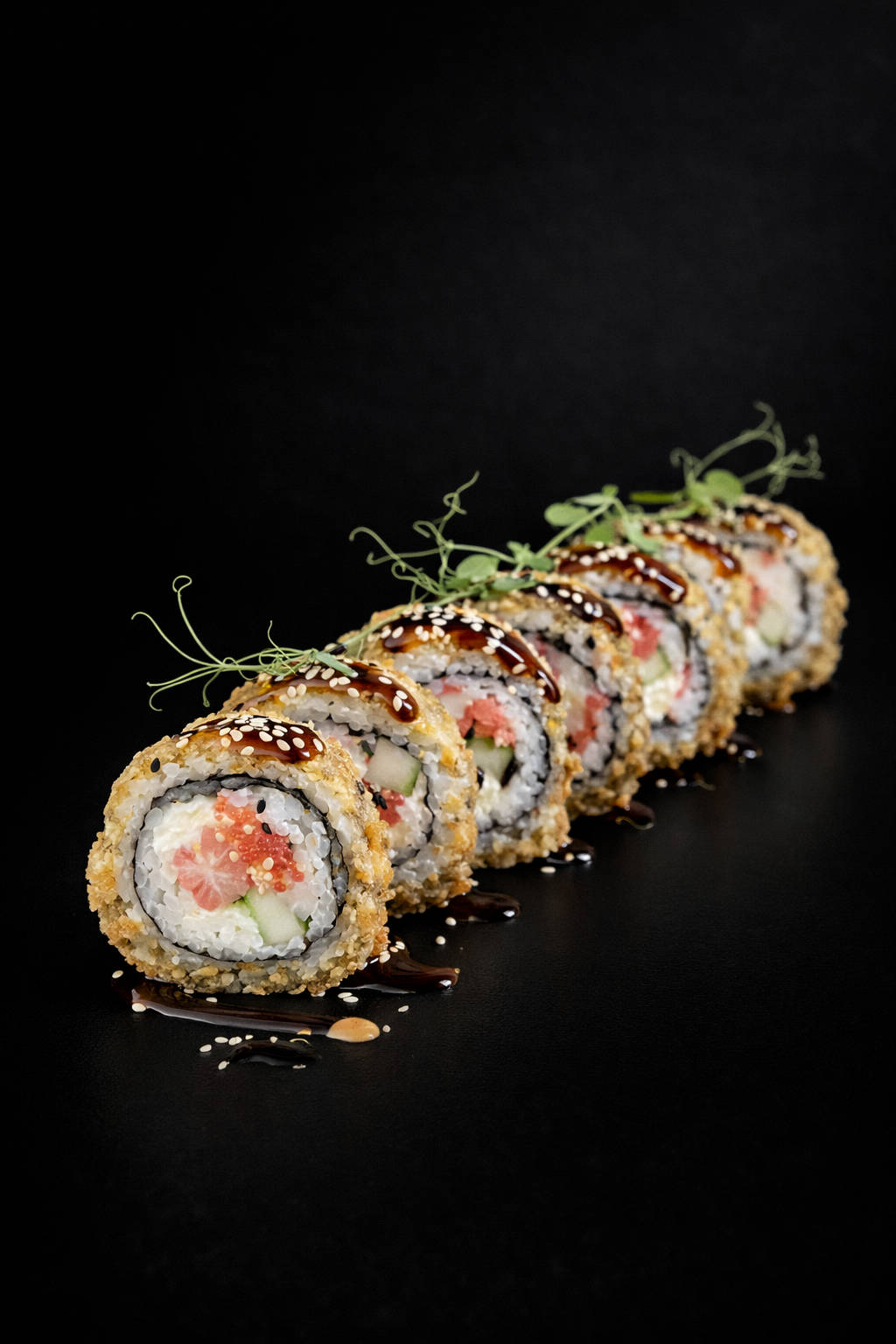 Лосось,тунец, угорь, огурец , икра летучей рыбы, соус унаги
